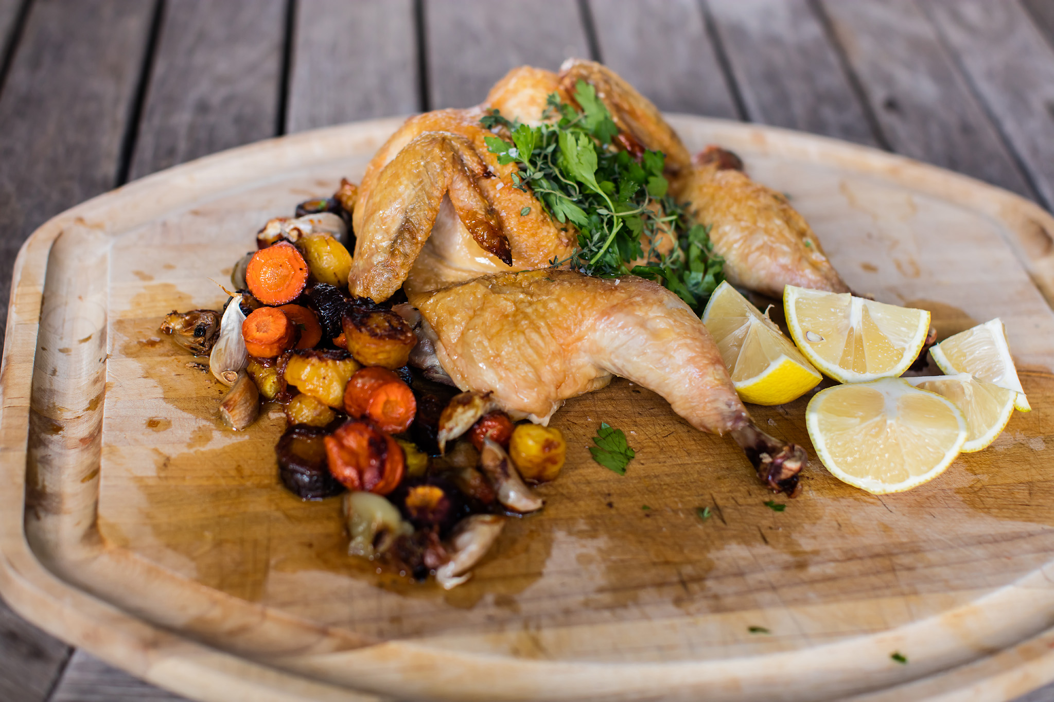 The saving grace? The everyman’s go-to dinner of choice, the roast chicken. To change it up a bit, why not spatchcock it? And for extra entertainment, try saying spatchcock three times after a couple glasses of wine. It simply means that the spine is cut out and the whole bird is flattened so it will cook evenly, and in about 30 minutes.