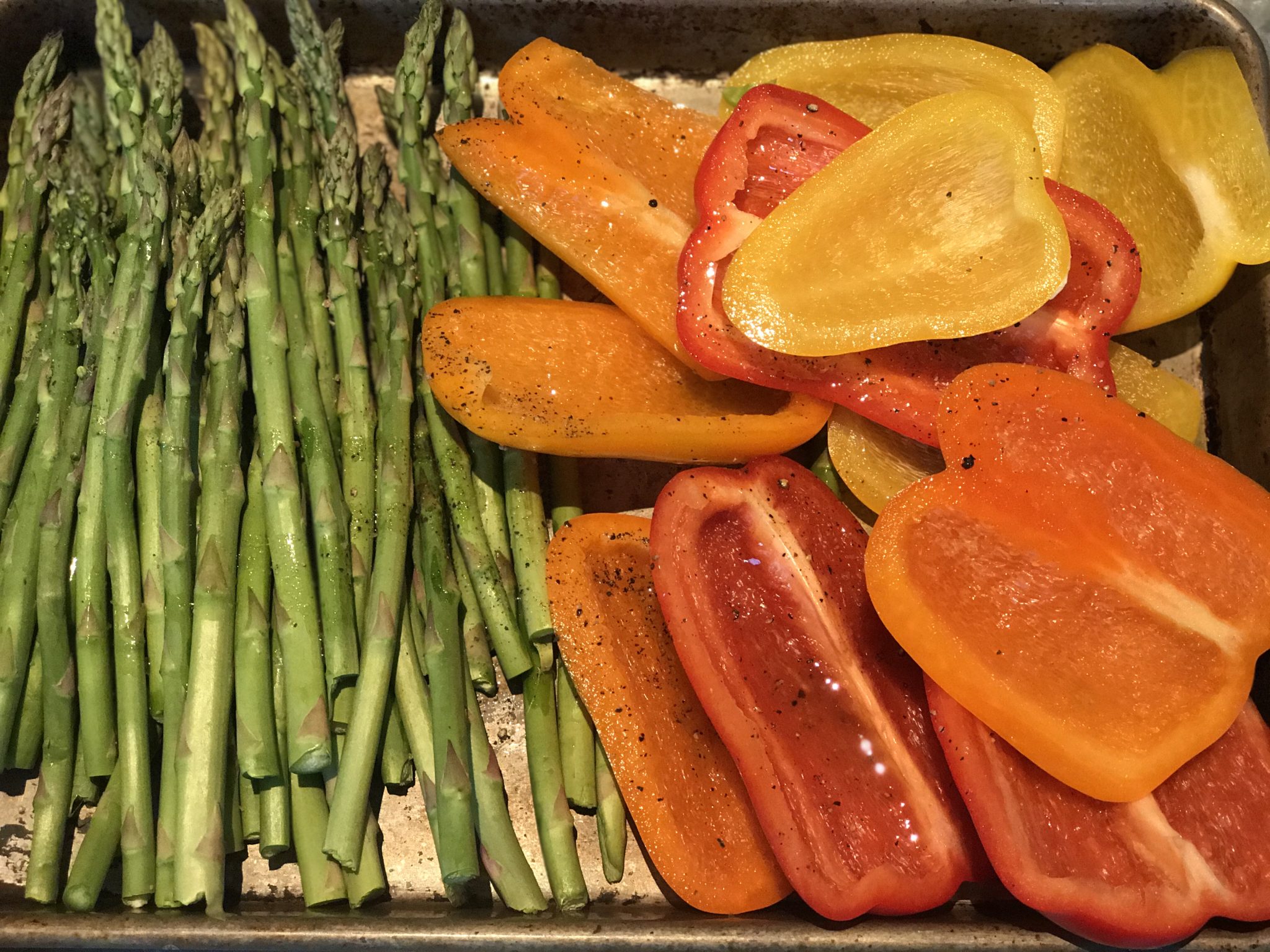 Fried rice with onion, asparagus, carrots, peas and thinly sliced bok choy. I have leftover ribeye I’ll dice and sauté in a little neutral-flavored oil, such as grapeseed or avocado oil, along with the diced onion. Then I’ll add in the chopped vegetables, a couple scrambled eggs and the steamed rice, and season it with tamari (gluten-free soy sauce) or coconut aminos (if you’re feeding people with soy allergies). We top ours with sriracha or sambal oelek.