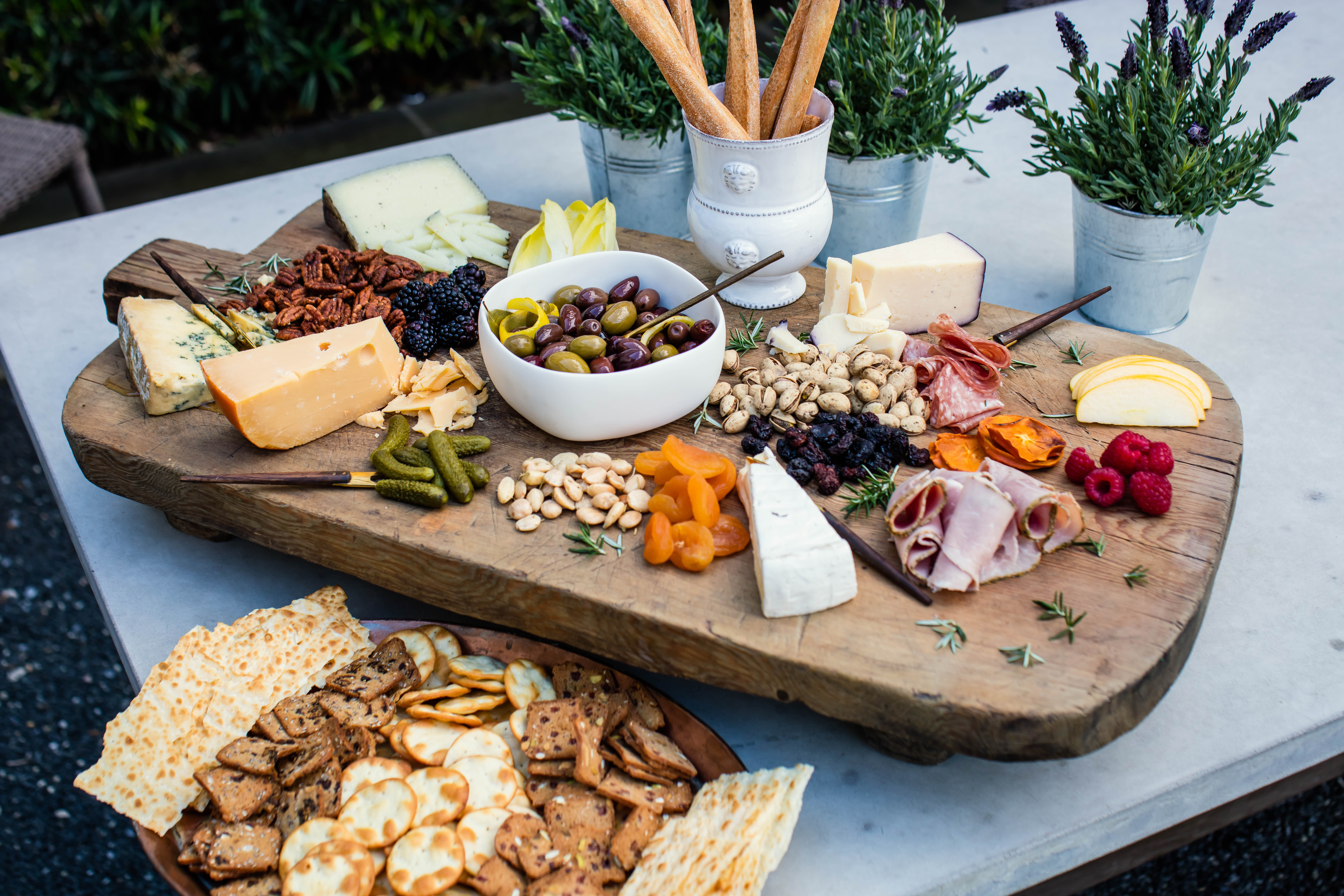 • Crackers, bread sticks and flat bread (Sardinian flat bread, sliced baguette, seeded crackers, as well as rice crackers or endive spears for gluten-free friends)