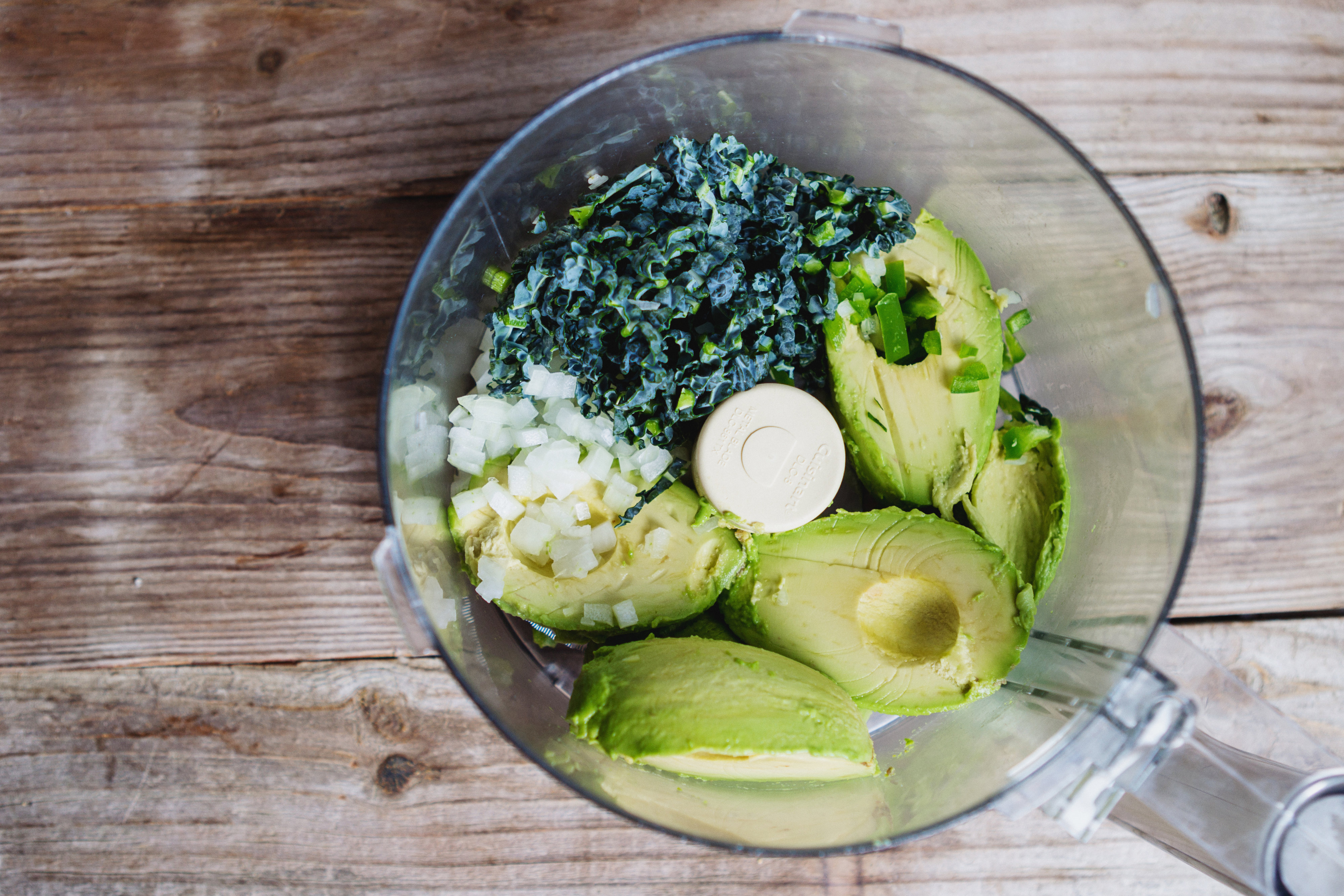 Start with everything but the avocado in the bowl of your food processor, and then pulse to combine. Add the avocado and give it a whirl. I prefer Lacinato kale in this recipe, which has a mild and almost milky flavor. But curly kale is fine, too. To keep things grain-free and completely plant-based, serve with plantain chips and colorful crudité (sliced peppers, carrots, celery and cucumber). I’m not sure if there’s anything else out there that’s as healthy as it is delicious.