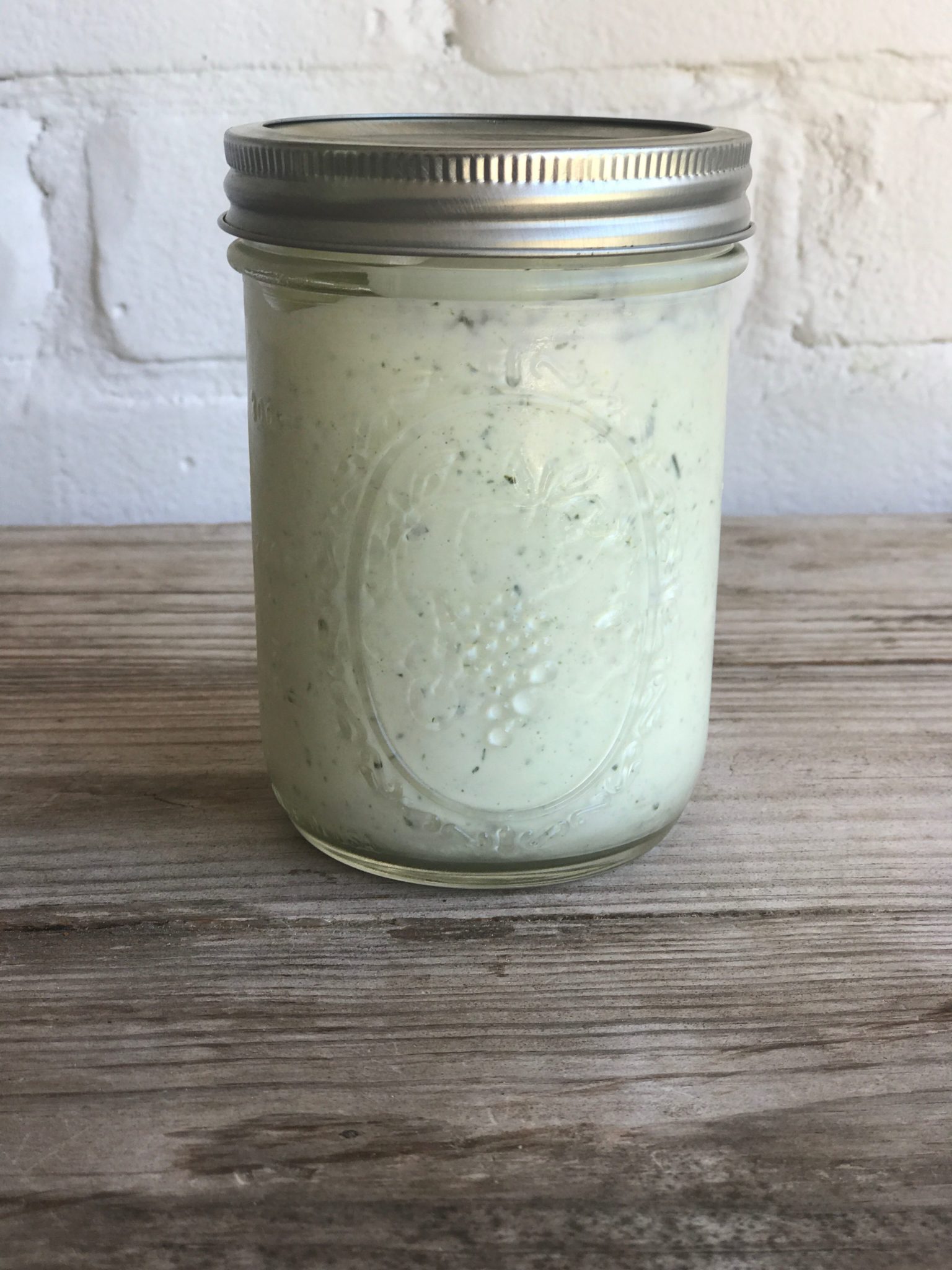 Ranch dressing! It’s the natural partner for cold and crunchy iceberg lettuce, carrot sticks and slices of takeout pizza. I have two different versions of ranch dressing, one full of herbs and lemon, and the other full of jalapeño and cilantro. I’ve also been known to tone down the “green things” and jalapeños for picky eaters.