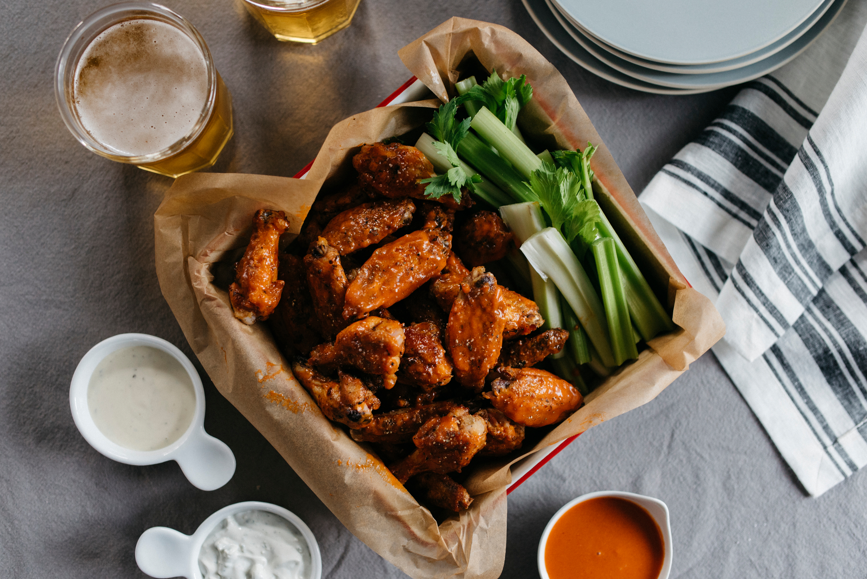 Superbowl Sunday is just around the corner, and I can tell you one thing that will be couch side at our house: Buffalo chicken wings. At this point, I have enough tasty Whole30 snacks up my sleeve that no one will be the wiser if I keep our entire menu clean. The only problem with these bad boys is portion control. And no, I didn’t cheat and have any of the frothy beer in the photo!
