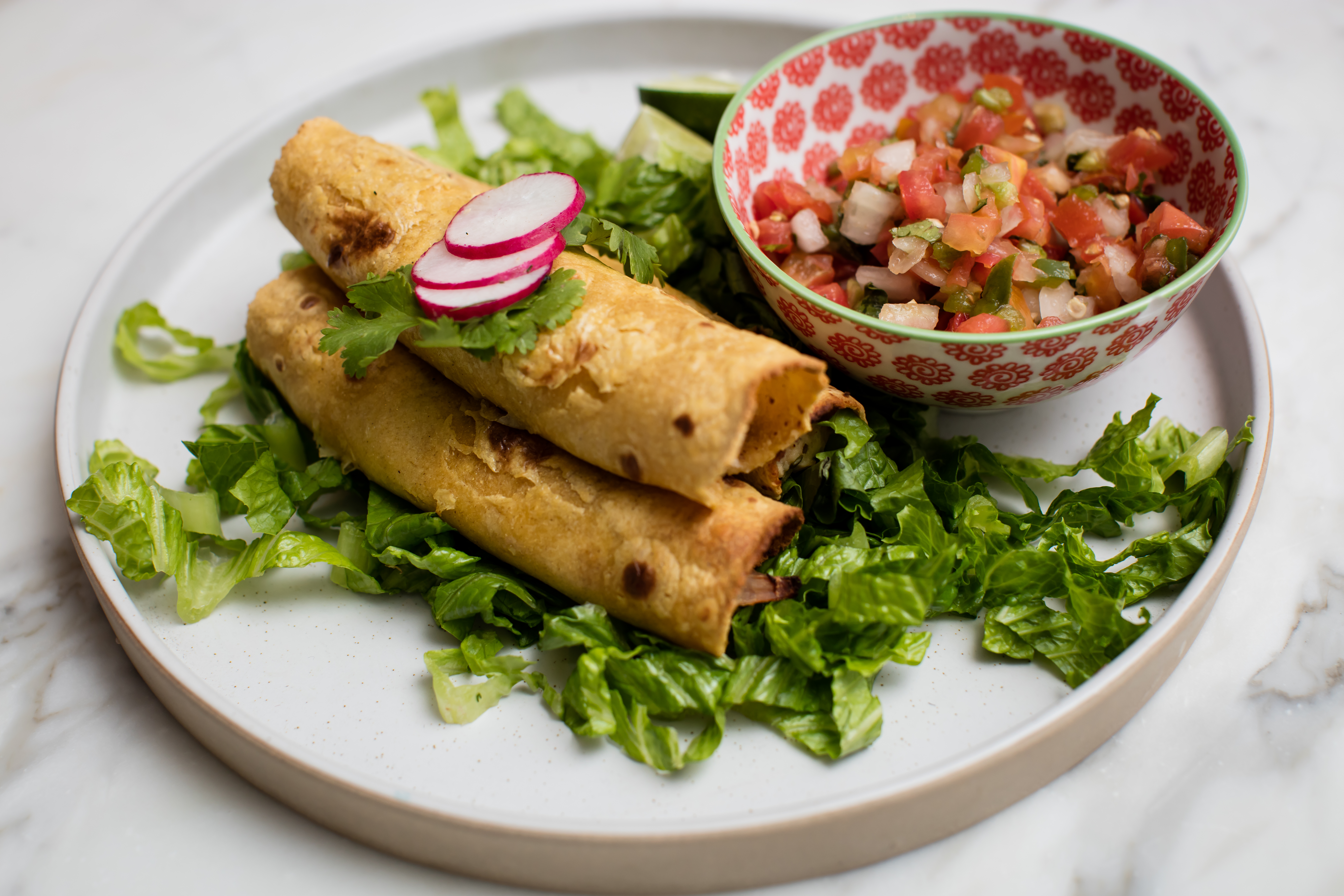 Baked chicken taquitos are a must! You can use the recipe for these taquitos with cheddar and cream cheese. You could also use just the shredded chicken, or shredded chicken, cheese and green chilies. Serve with a big green salad tossed with super simple salad dressing and guacamole for dipping. If you have extras, place them in a freezer bag and toss in your freezer. To make the shredded chicken, I used three whole boneless/skinless chicken breasts with about 1/4 cup enchilada sauce. Instead of enchilada sauce, you could use red or green salsa or just salt, pepper and fresh lime juice. Seal your Instant Pot and set to manual for 15 minutes. Let the pressure release and shred the chicken with two forks.