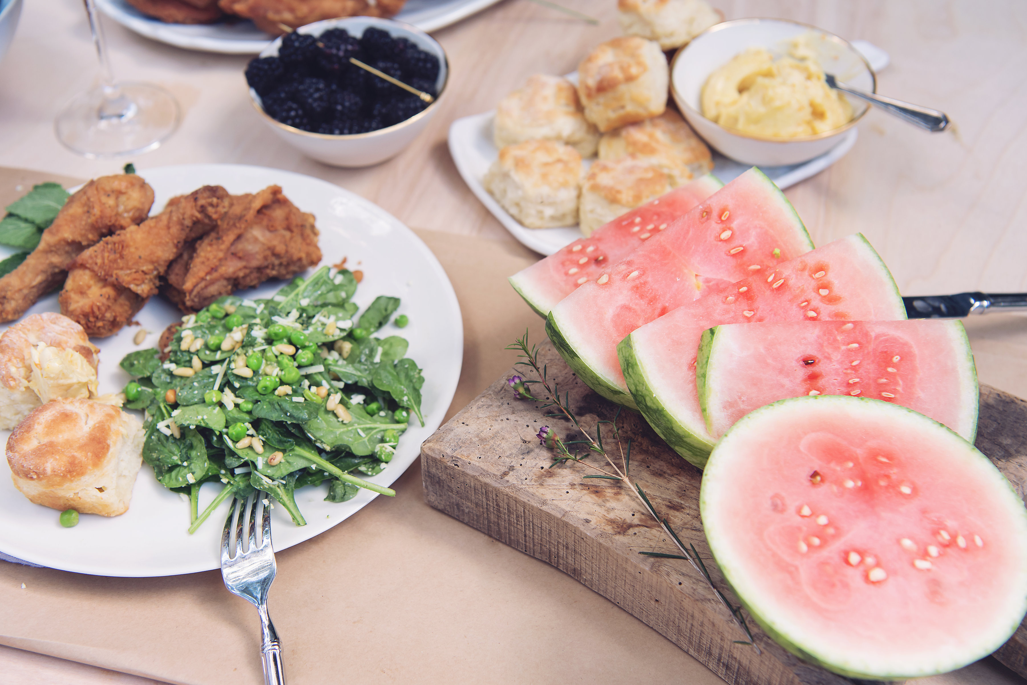 Recently, Caroline Harper Knapp asked me to provide the menu for an easy Memorial Day gathering. This spinach salad was of course on the menu, along with purchased fried chicken, my orange blossom honey butter, buttermilk biscuits and watermelon slices. Easy (spinach salad) peasy.