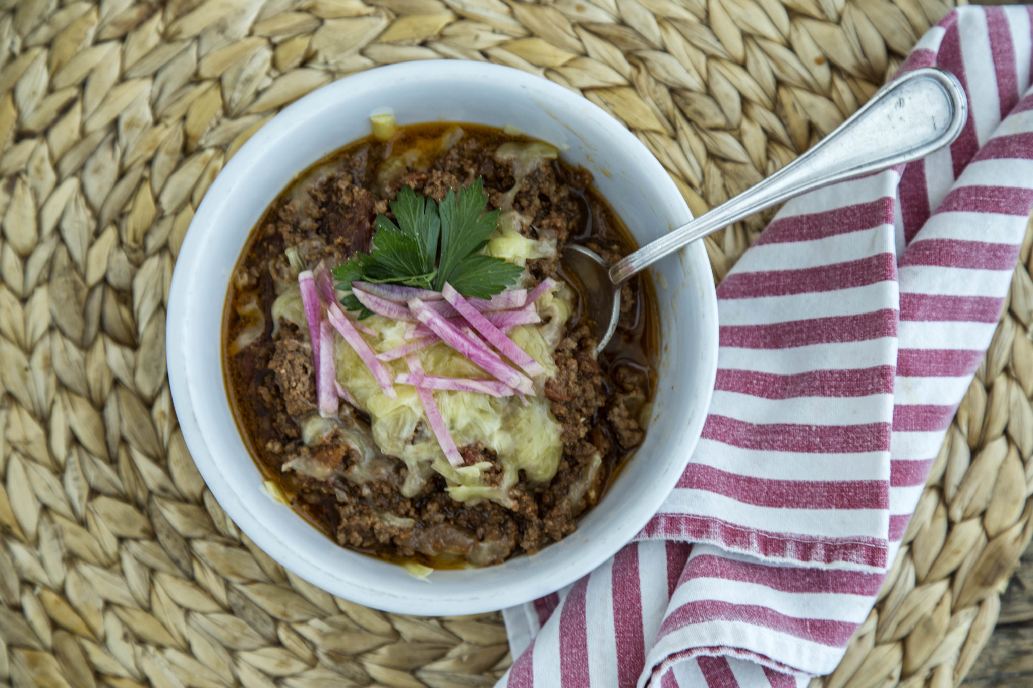 We have a few extra kids coming over before their first Young Life meeting tonight. I’m making a big batch of weeknight chili and putting out all the fixings (grated cheese, sour cream, corn bread). If you’re doing Whole30, scoop out some of the chili before adding the beans. I may stir in a cup of cooked rice cauliflower to give mine more bulk and vegetables. You can make the chili with either ground dark meat turkey or ground beef; or if you don’t like beans, double the meat and call it a day. Also make sure your bacon is sugar-free, Pederson’s makes a great Whole30 approved bacon.